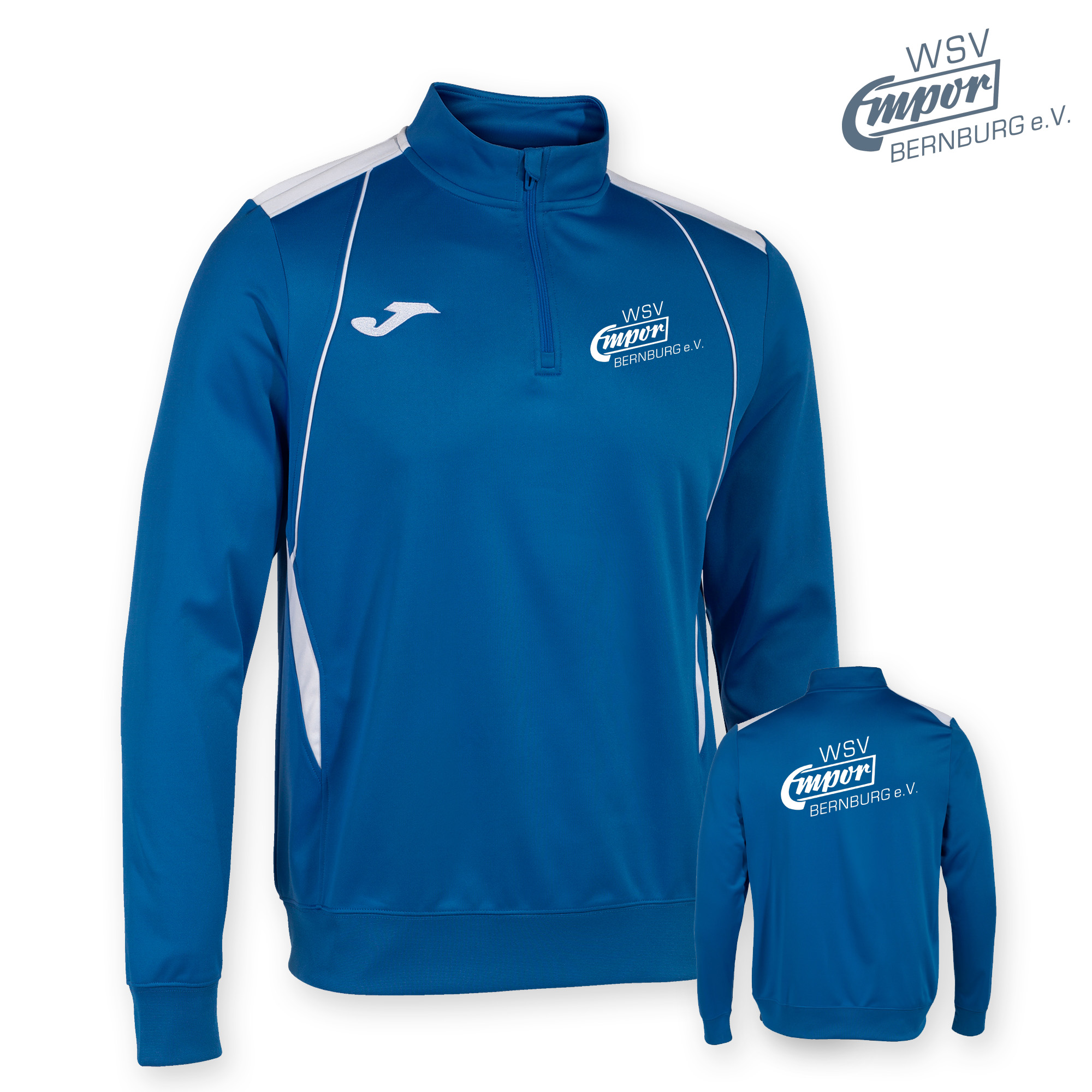 Joma Zipper CHAMPION VII - WSV Bernburg mit Reißverschlusskragen, das durch seine kontrastierende Passe, den fortschrittlichen Schnitt, die Rippung an den Manschetten für besseren Sitz und das aufgestickte Logo besticht.